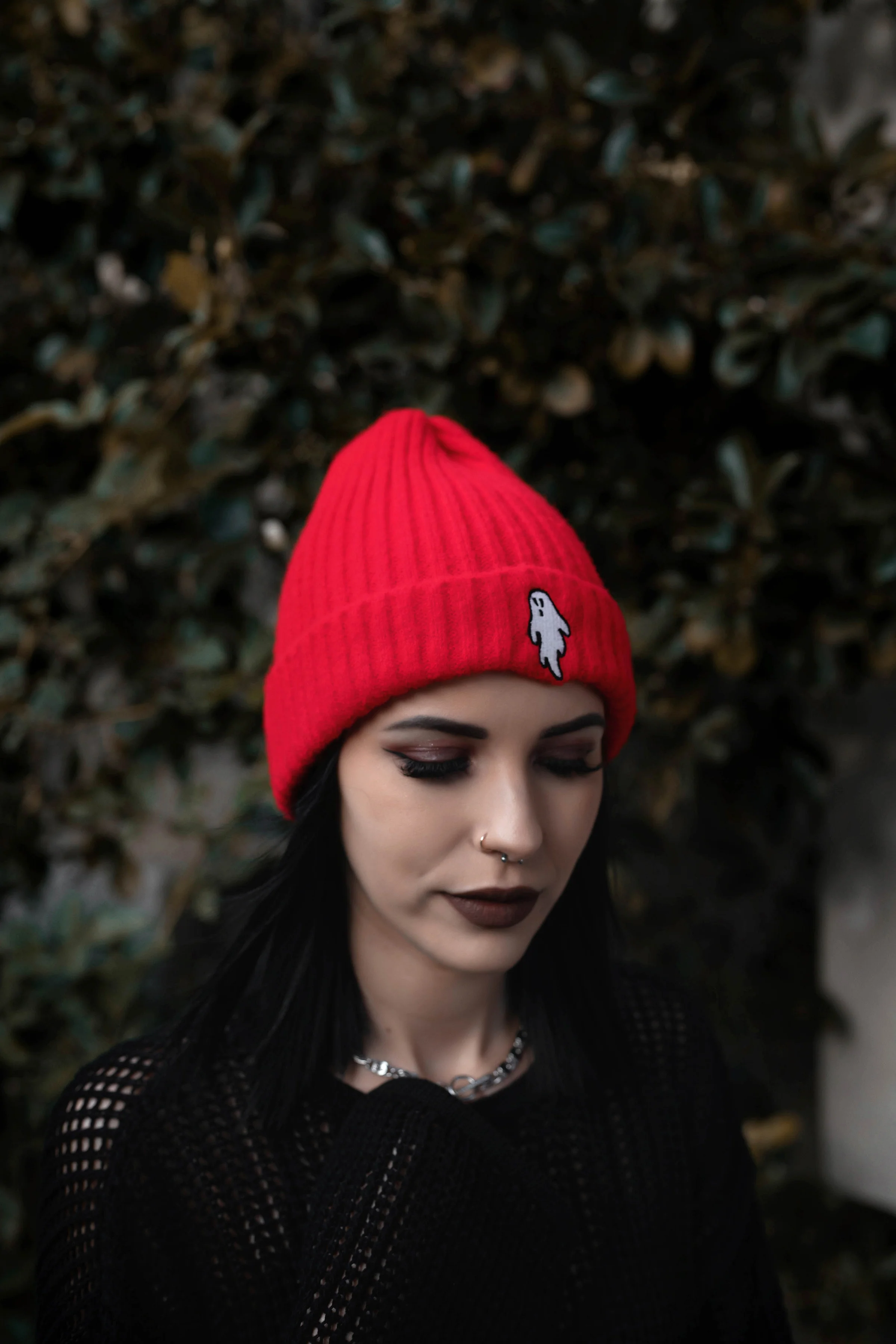 Vampire Red | Ghostie Embroidered & Reversible Knit Beanie
